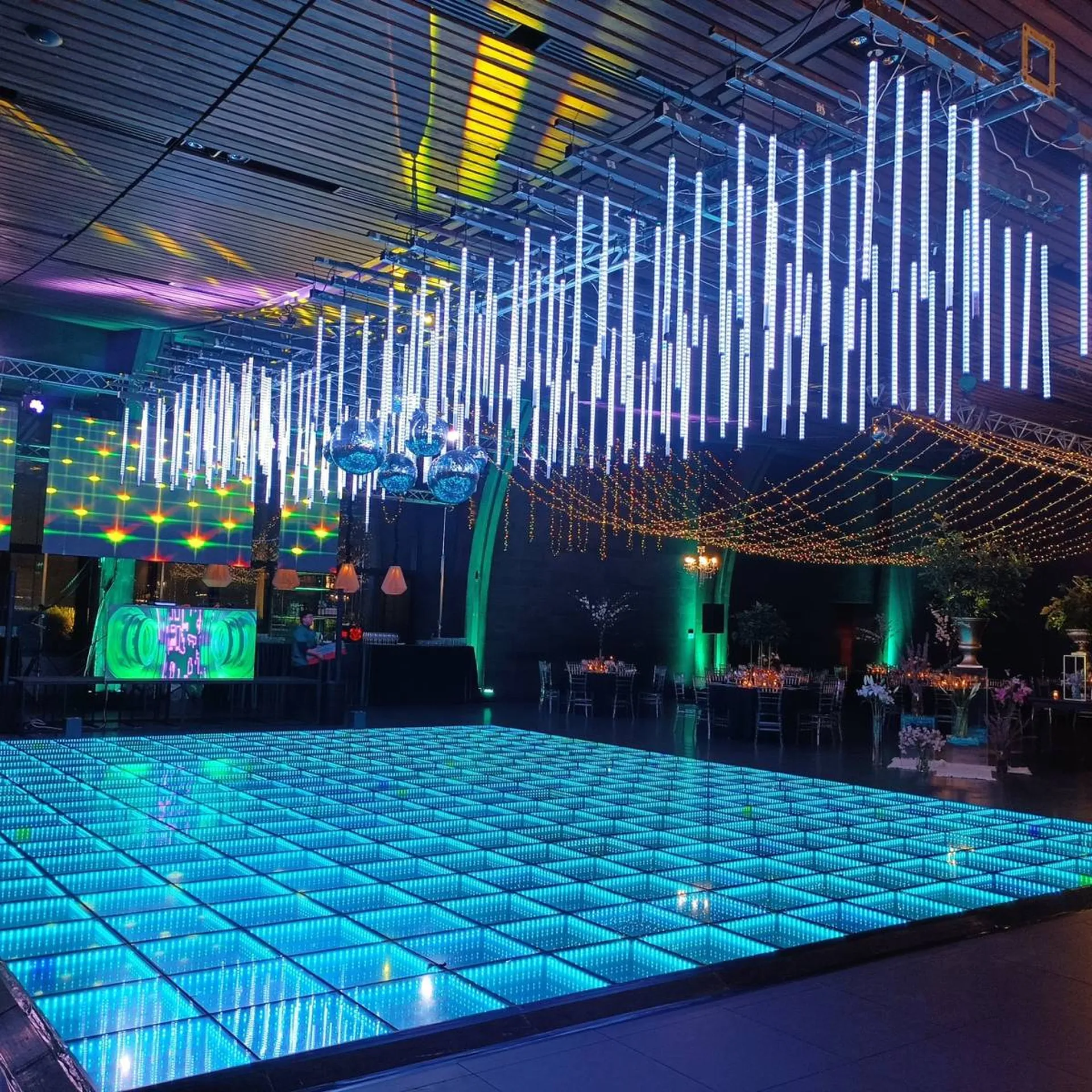 Grâce à notre large parc matériel d'éclairage, nous pouvons proposer des mises en lumière personnalisées, correspondantes à votre thème, à votre cahier des charges et à l'ambiance générale souhaitée.